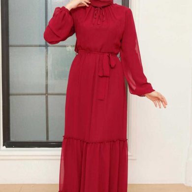 Claret Red Hijab Dress